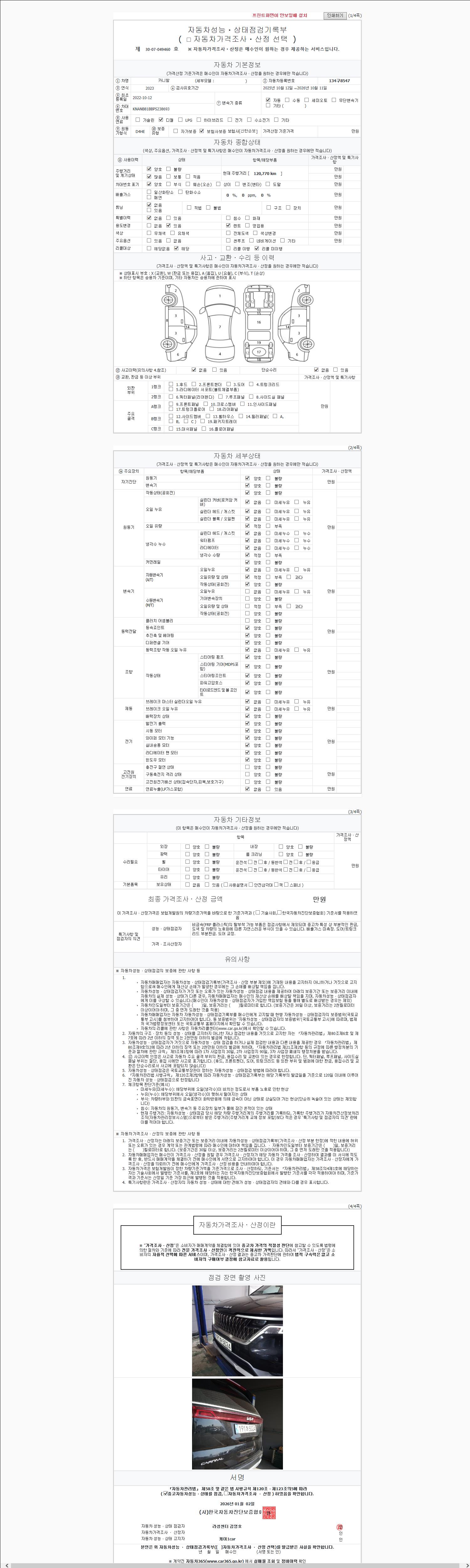 사고유무 성능기록부 참조 제시번호 제 2147483647 호