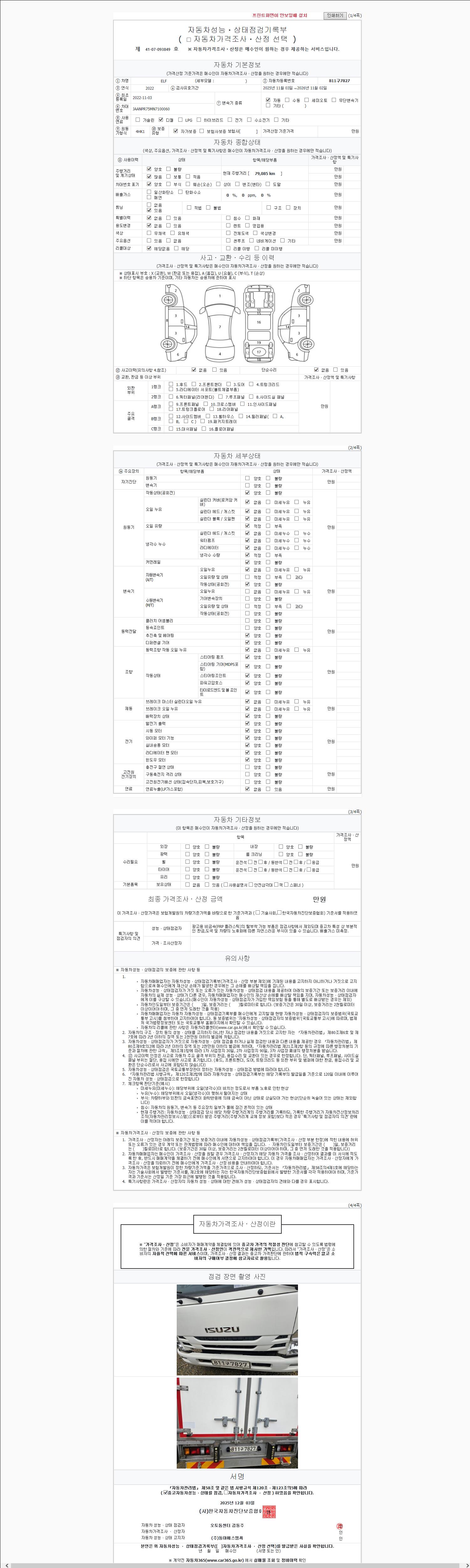-중고자동차 매매업자를 통해 차량을 구입하실 경우 반드시 "중고자동차 성능, 상태점검 기록부"를 교뷰 받으셔야 하며, 매매업자는 반드시 의무 교부 하여야 압니다.