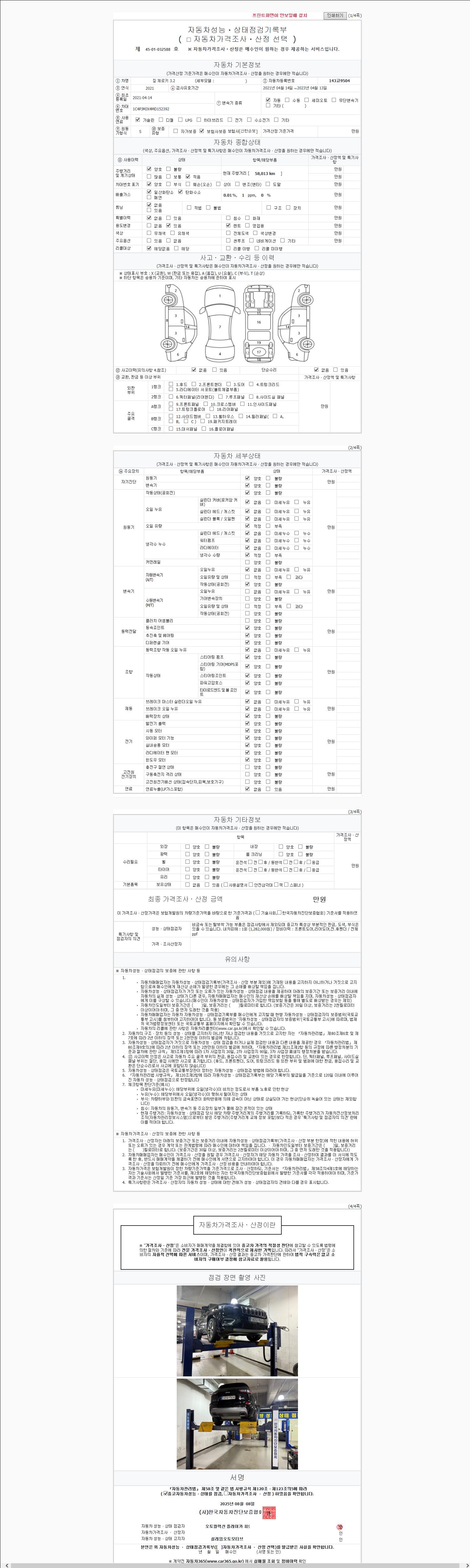 2. 차량 등록증이나 성능점검지 등을 상담자에게 요청및 확인하시고 사전에 미리 점검 하시기를 권유드립니다.