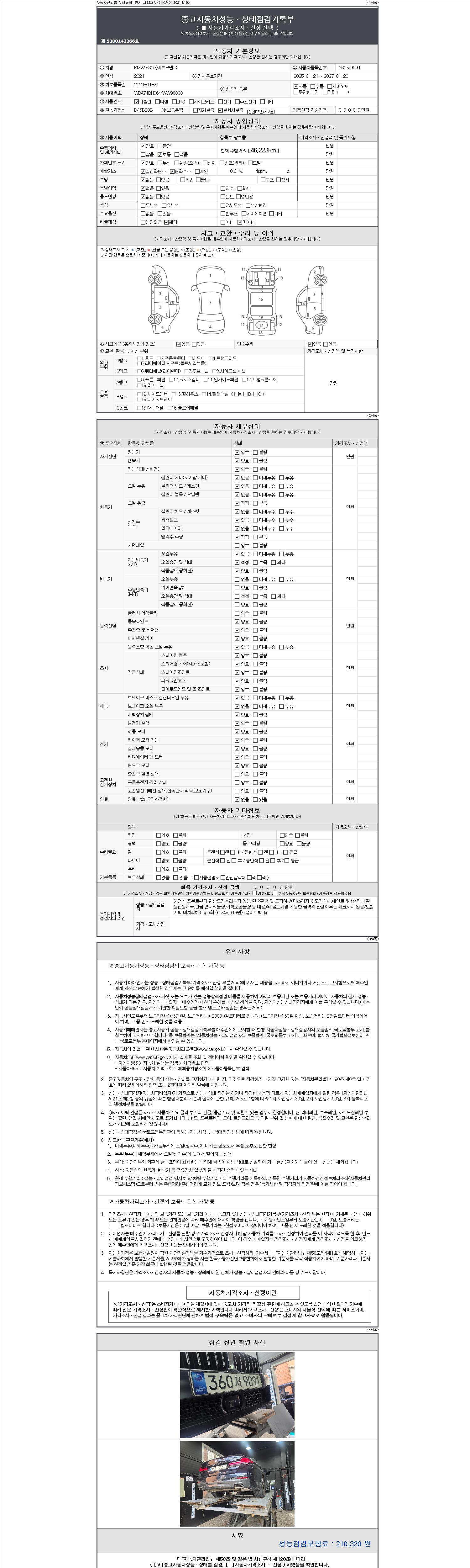 -중고자동차 매매업자를 통해 차량을 구입하실 경우 반드시 "중고자동차 성능, 상태점검 기록부"를 교뷰 받으셔야 하며, 매매업자는 반드시 의무 교부 하여야 압니다.