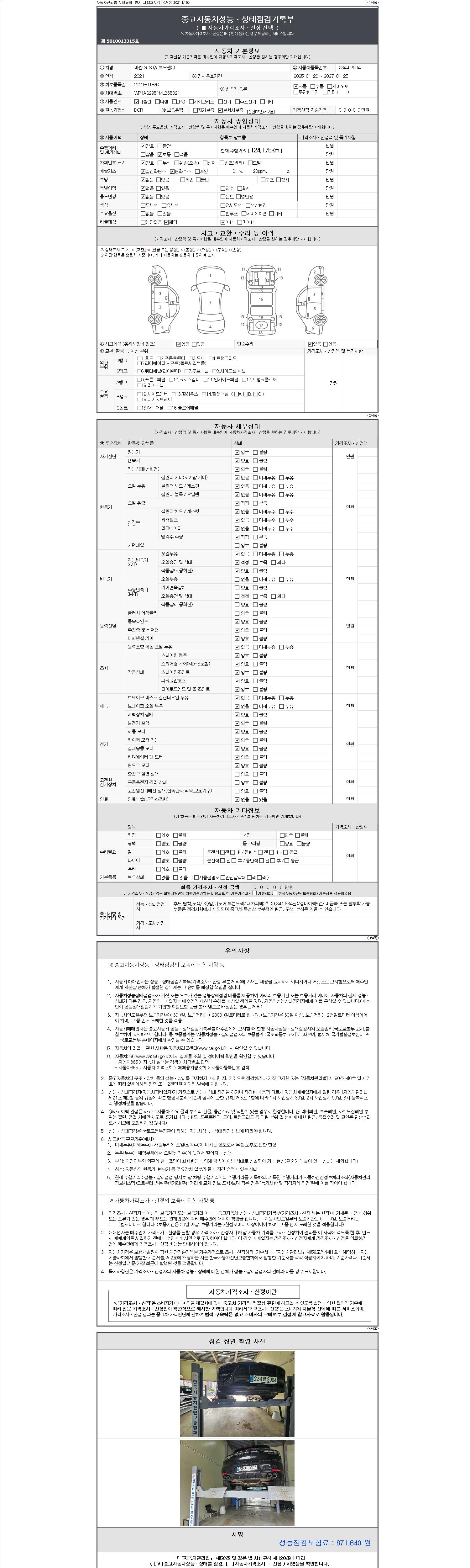 -중고자동차 매매업자를 통해 차량을 구입하실 경우 반드시 "중고자동차 성능, 상태점검 기록부"를 교뷰 받으셔야 하며, 매매업자는 반드시 의무 교부 하여야 압니다.