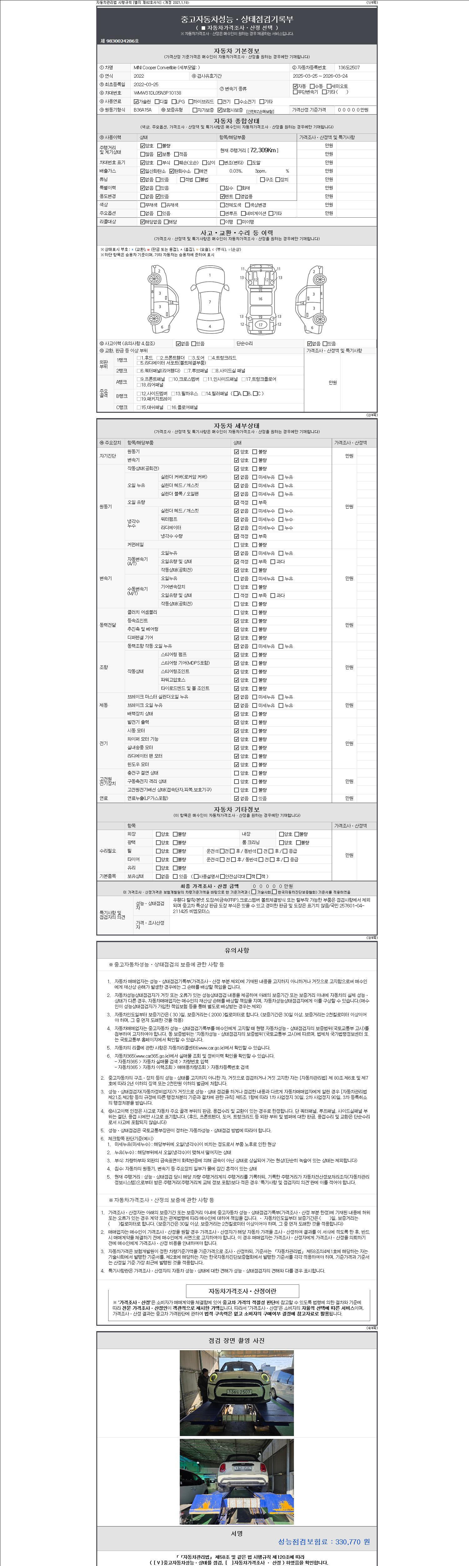 2. 차량 등록증이나 성능점검지 등을 상담자에게 요청및 확인하시고 사전에 미리 점검 하시기를 권유드립니다.