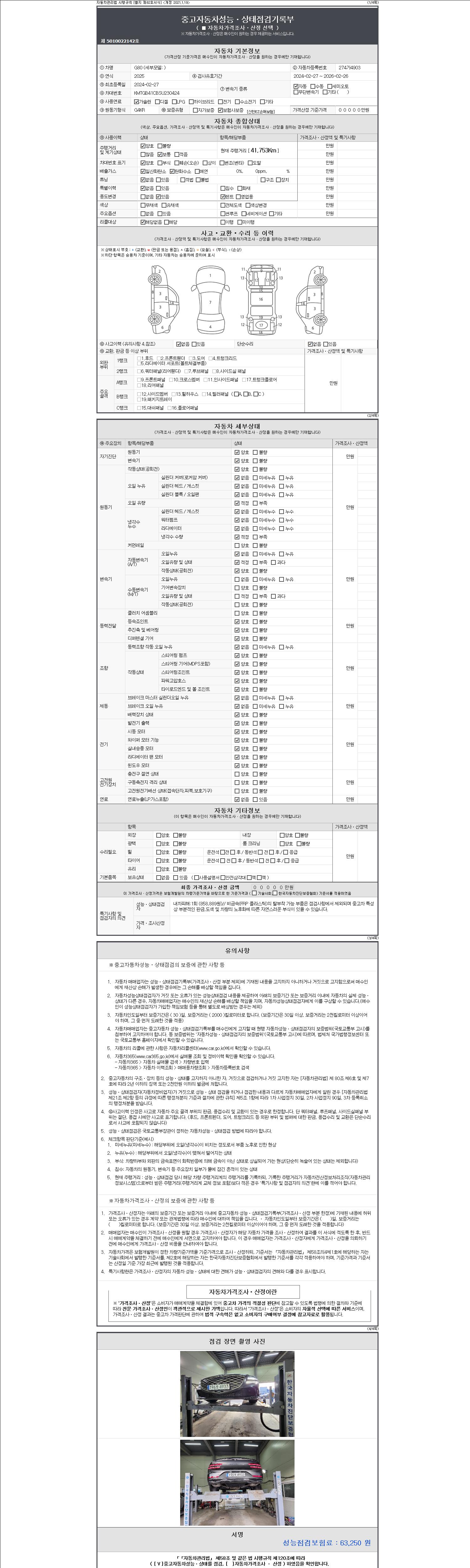 사고유무 성능기록부 참조 제시번호 제 2147483647 호