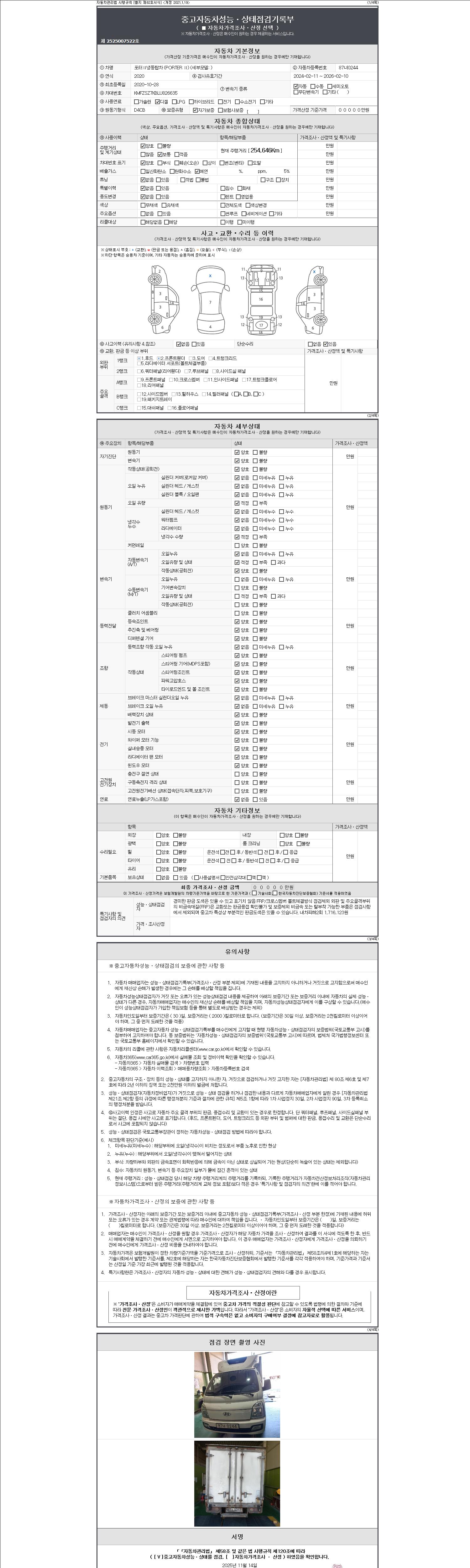 사고유무 성능기록부 참조 제시번호 제 2147483647 호