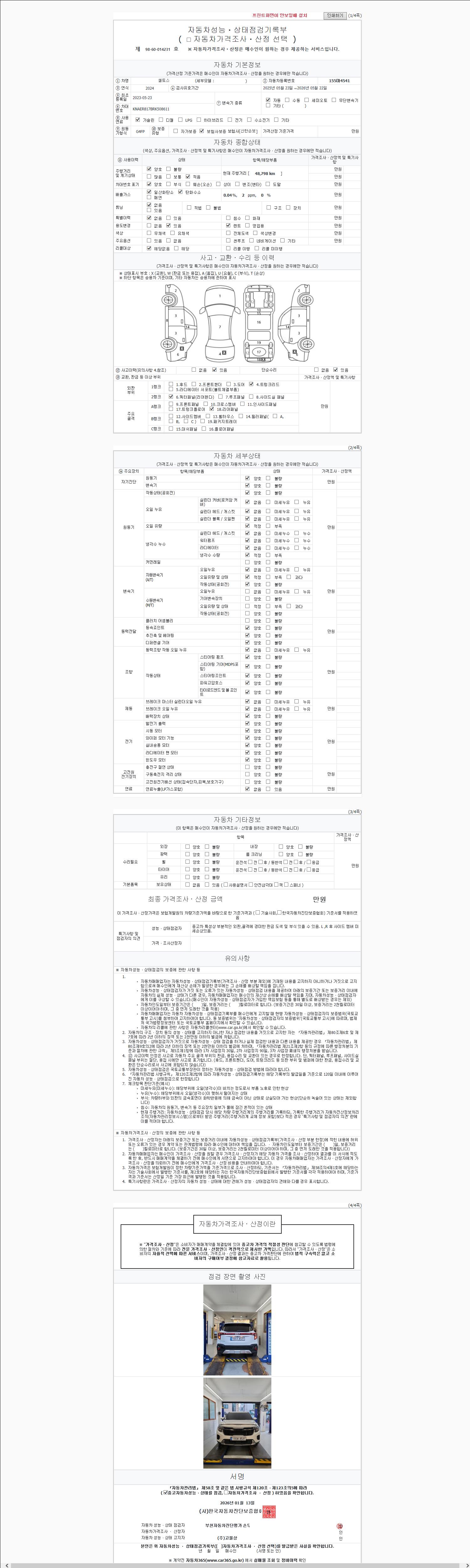 사고유무 성능기록부 참조 제시번호 제 2026006471 호