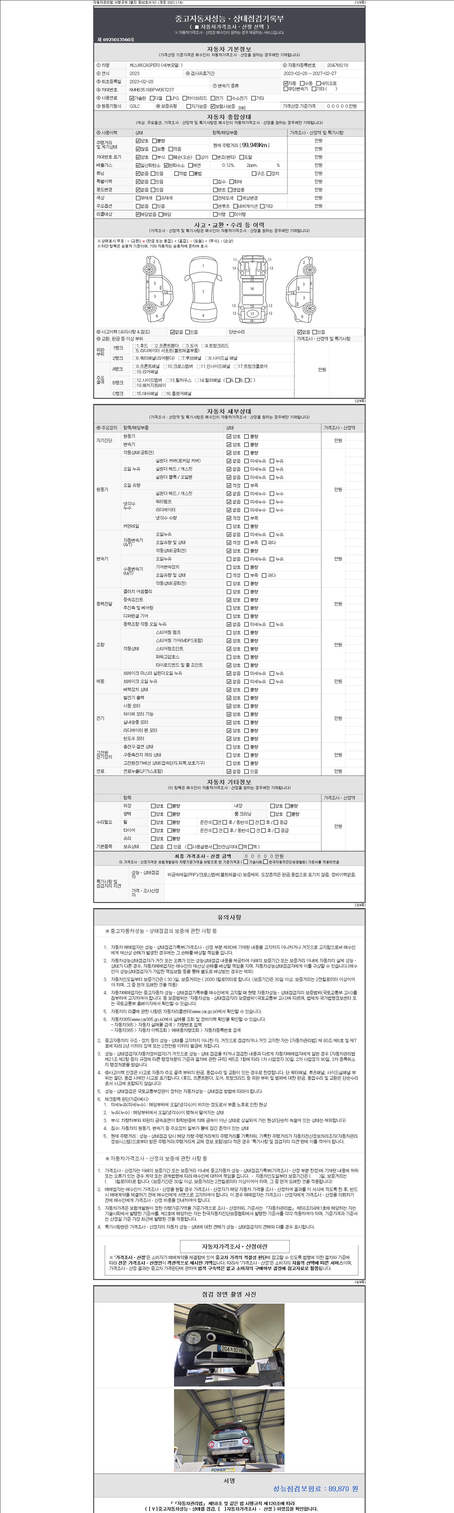 -중고자동차 매매업자를 통해 차량을 구입하실 경우 반드시 "중고자동차 성능, 상태점검 기록부"를 교뷰 받으셔야 하며, 매매업자는 반드시 의무 교부 하여야 압니다.