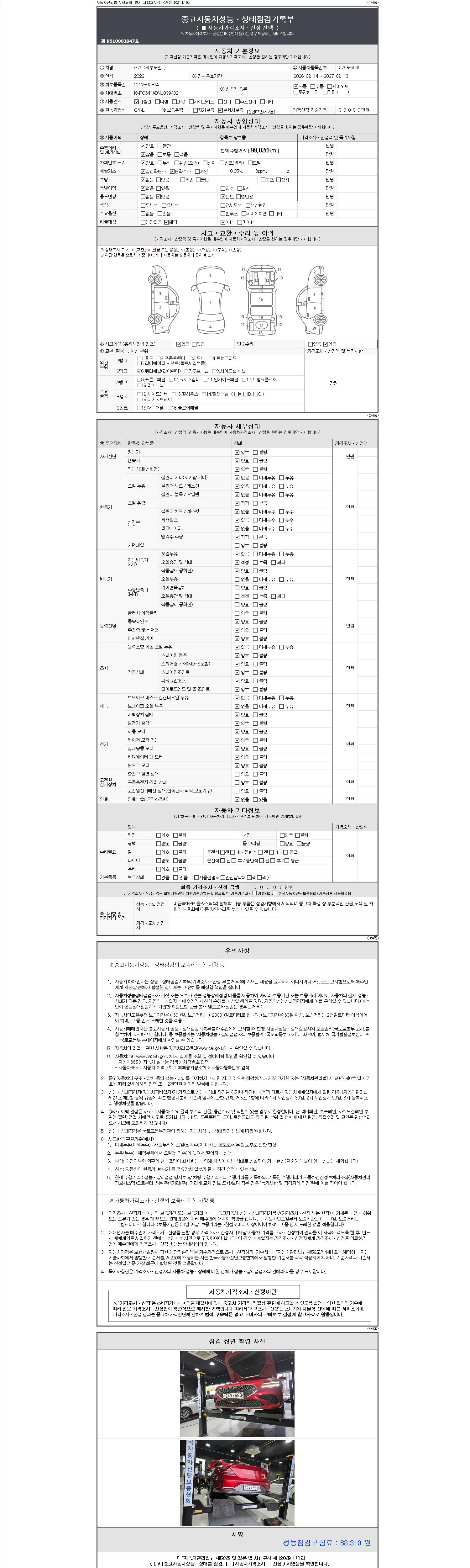 2. 차량 등록증이나 성능점검지 등을 상담자에게 요청및 확인하시고 사전에 미리 점검 하시기를 권유드립니다.