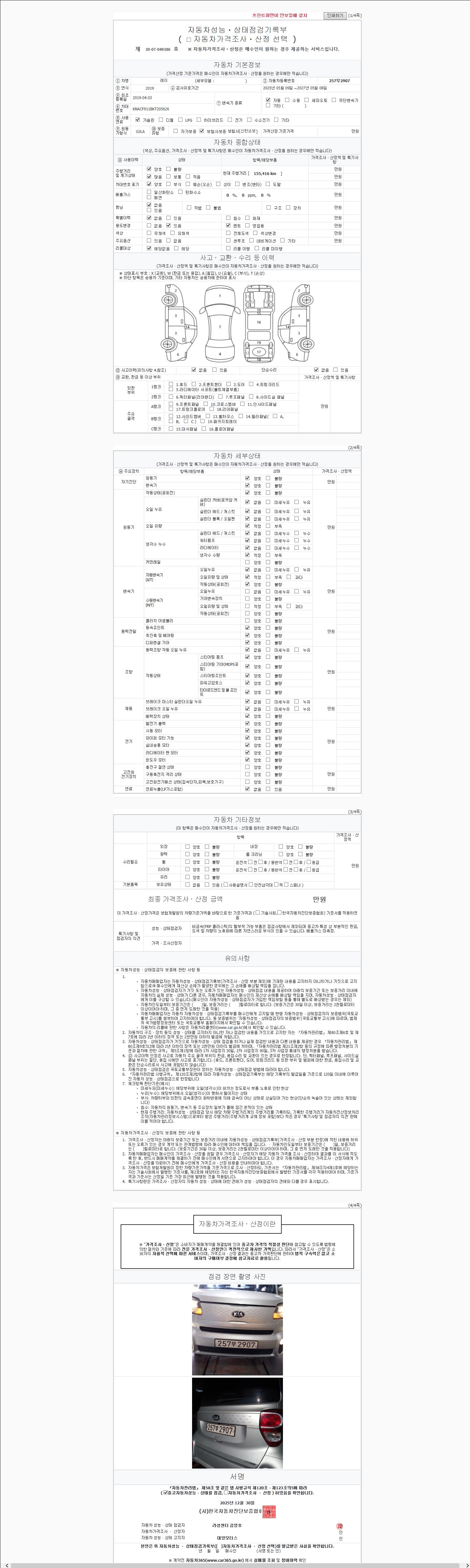 2. 차량 등록증이나 성능점검지 등을 상담자에게 요청및 확인하시고 사전에 미리 점검 하시기를 권유드립니다.