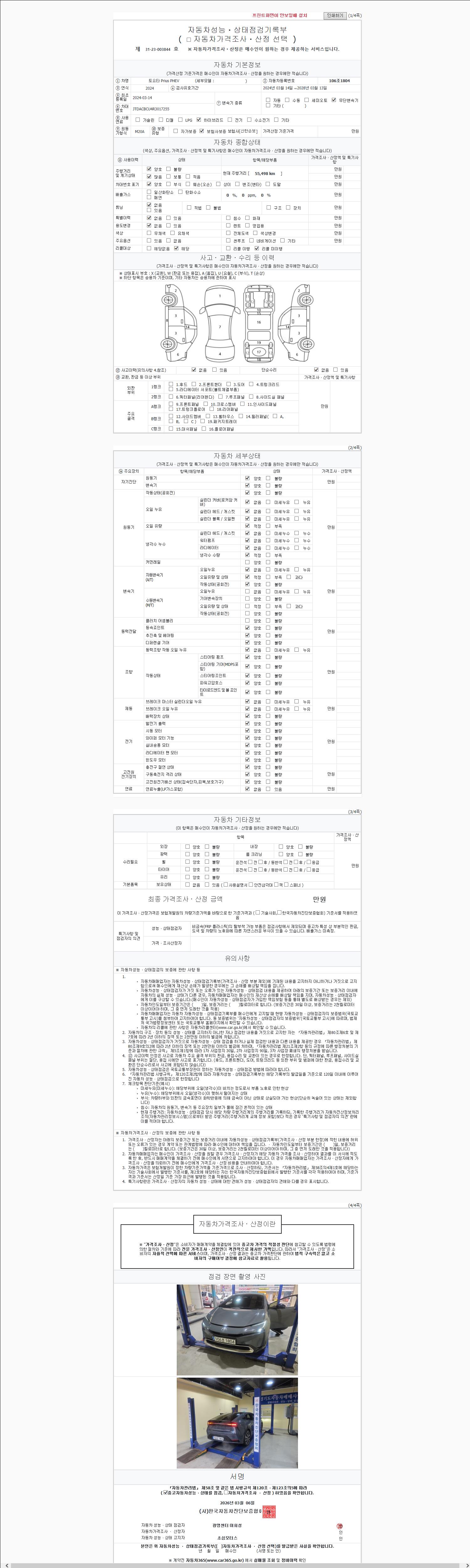| 주행거리 | 55,498 km | 차량번호 | 106조1804 | 사고유무 | 성능기록부 참조 | 제시번호 | 제 2147483647 호 |
