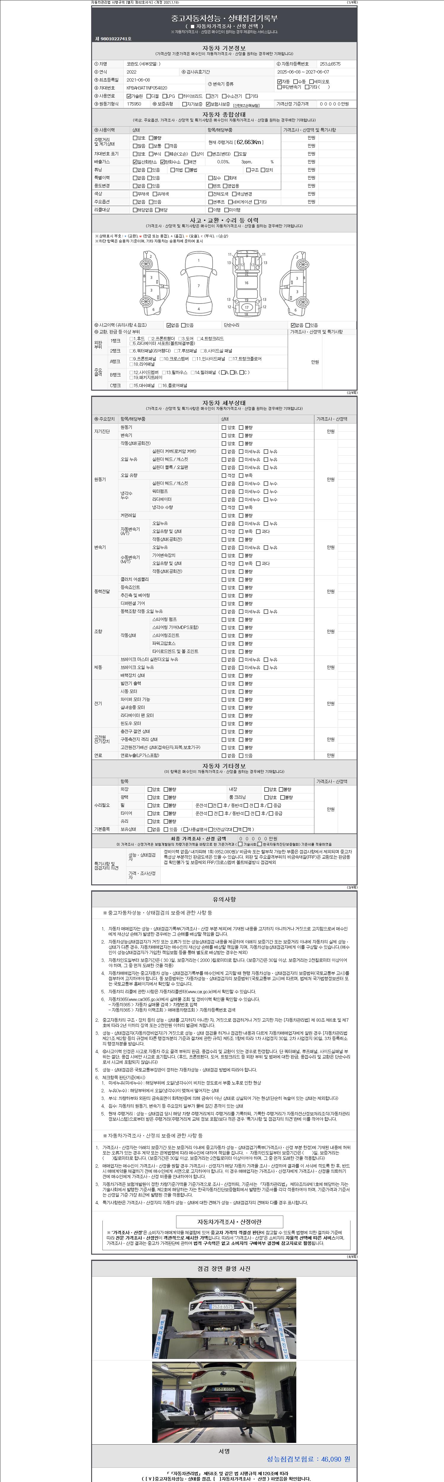 - 2. 차량 등록증이나 성능점검지 등을 상담자에게 요청및 확인하시고 사전에 미리 점검 하시기를 권유드립니다.