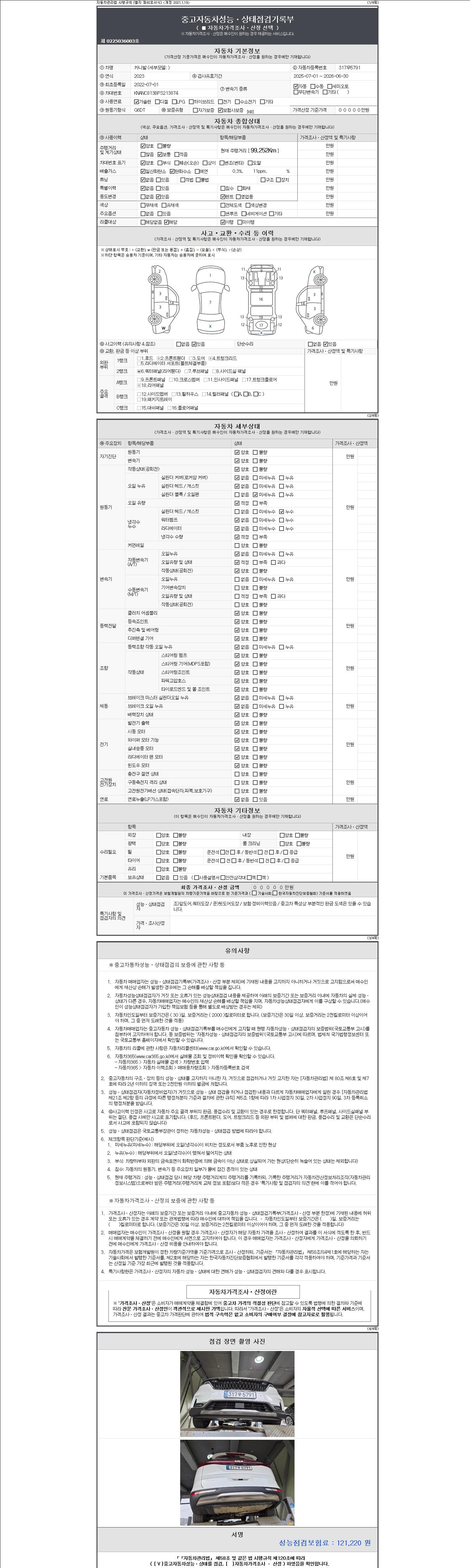 | 주행거리 | 99,252 km | 차량번호 | 317무5791 | 사고유무 | 성능기록부 참조 | 제시번호 | 제 2147483647 호 |