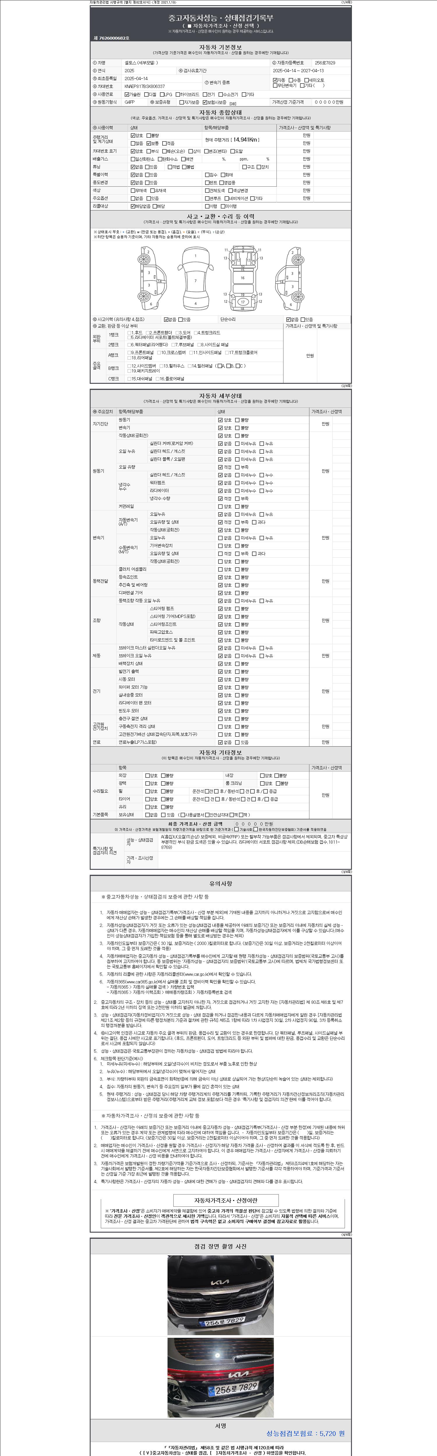 | 주행거리 | 14,941 km | 차량번호 | 256로7829 | 사고유무 | 성능기록부 참조 | 제시번호 | 제 2147483647 호 |