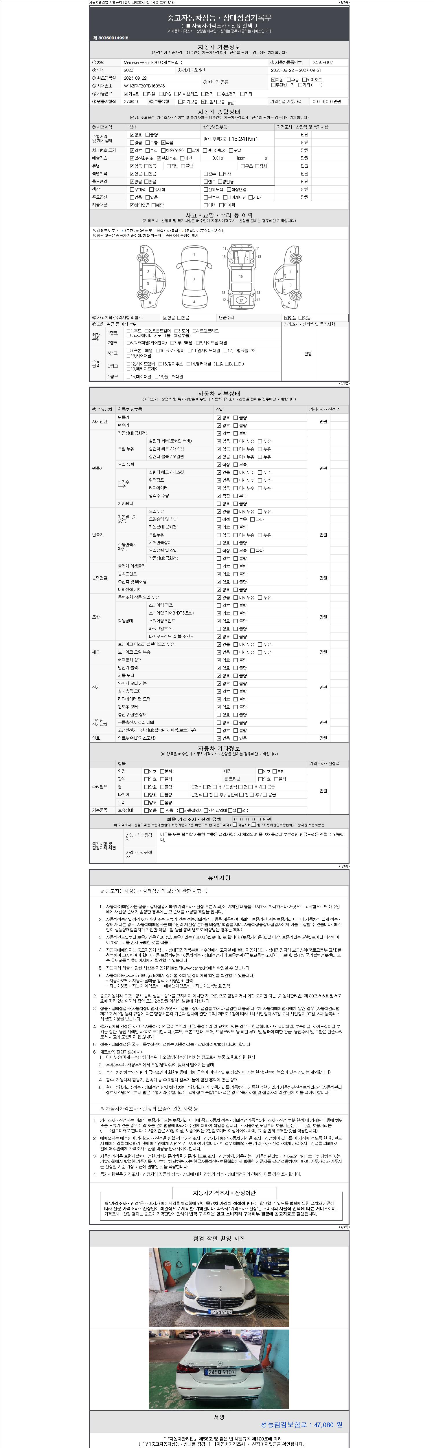 - 2. 차량 등록증이나 성능점검지 등을 상담자에게 요청및 확인하시고 사전에 미리 점검 하시기를 권유드립니다.