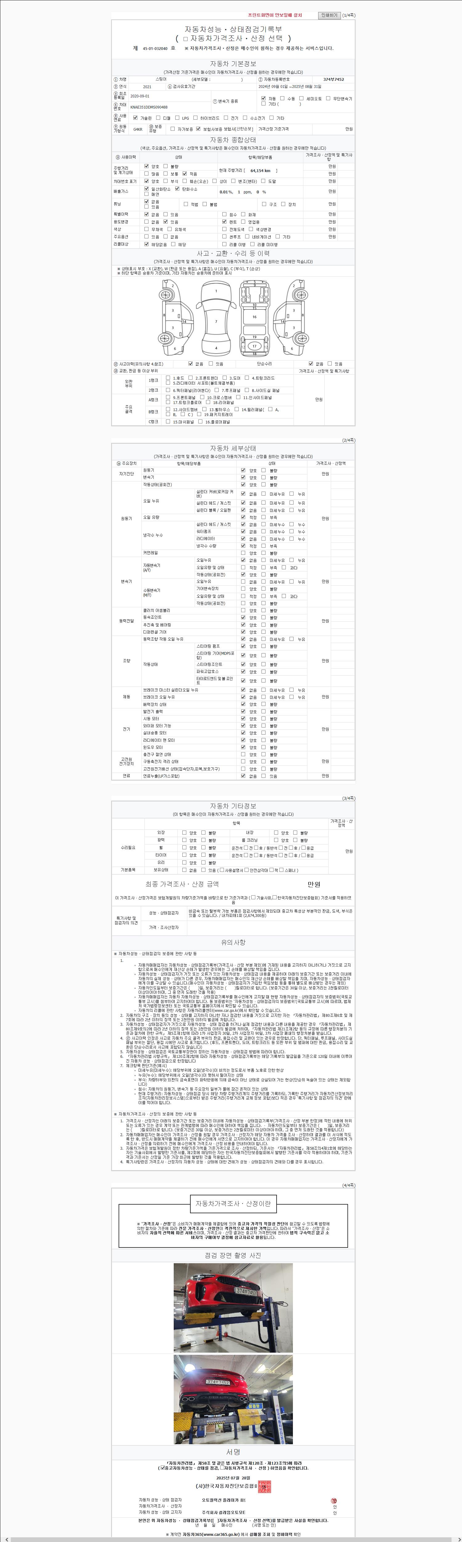 2. 차량 등록증이나 성능점검지 등을 상담자에게 요청및 확인하시고 사전에 미리 점검 하시기를 권유드립니다.