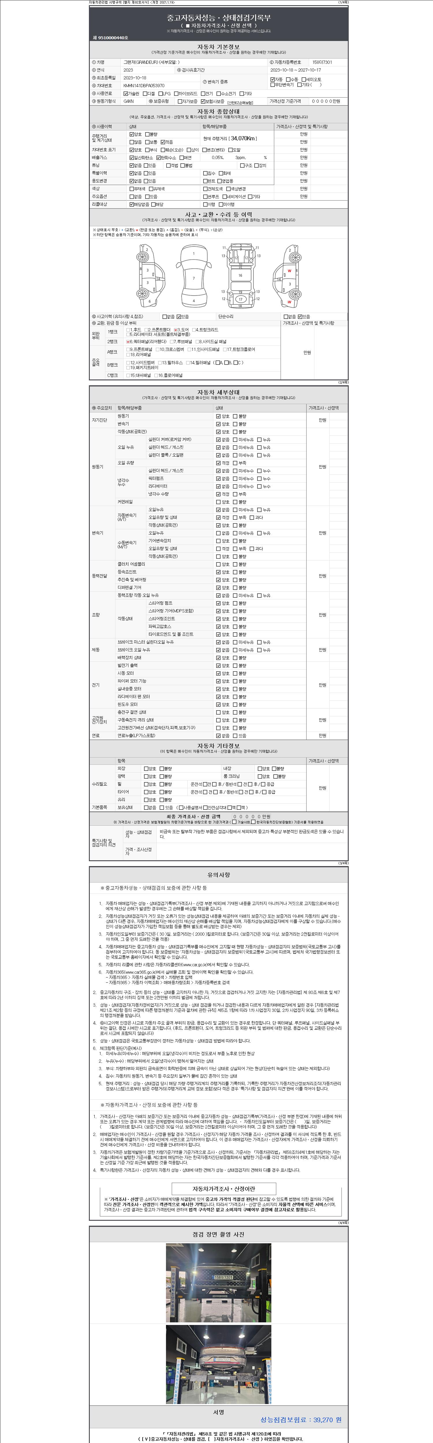 -중고자동차 매매업자를 통해 차량을 구입하실 경우 반드시 "중고자동차 성능, 상태점검 기록부"를 교뷰 받으셔야 하며, 매매업자는 반드시 의무 교부 하여야 압니다.