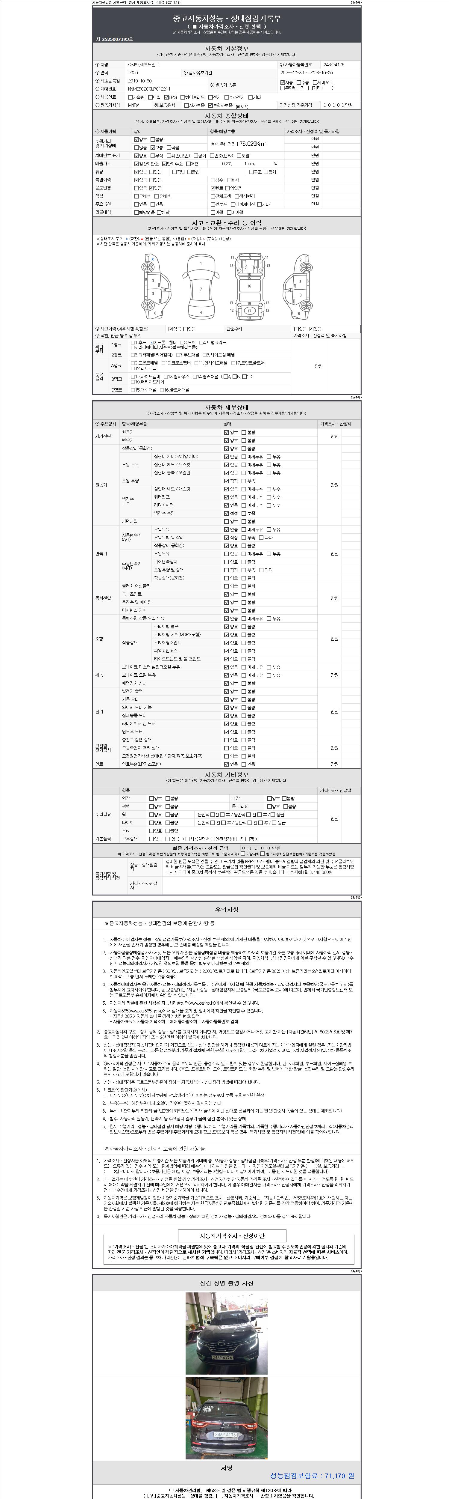 2. 차량 등록증이나 성능점검지 등을 상담자에게 요청및 확인하시고 사전에 미리 점검 하시기를 권유드립니다.