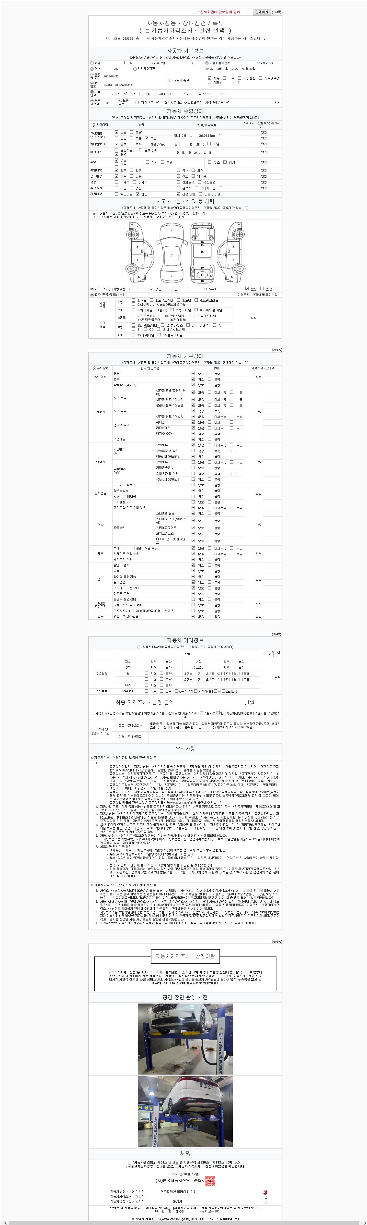 2. 차량 등록증이나 성능점검지 등을 상담자에게 요청및 확인하시고 사전에 미리 점검 하시기를 권유드립니다.