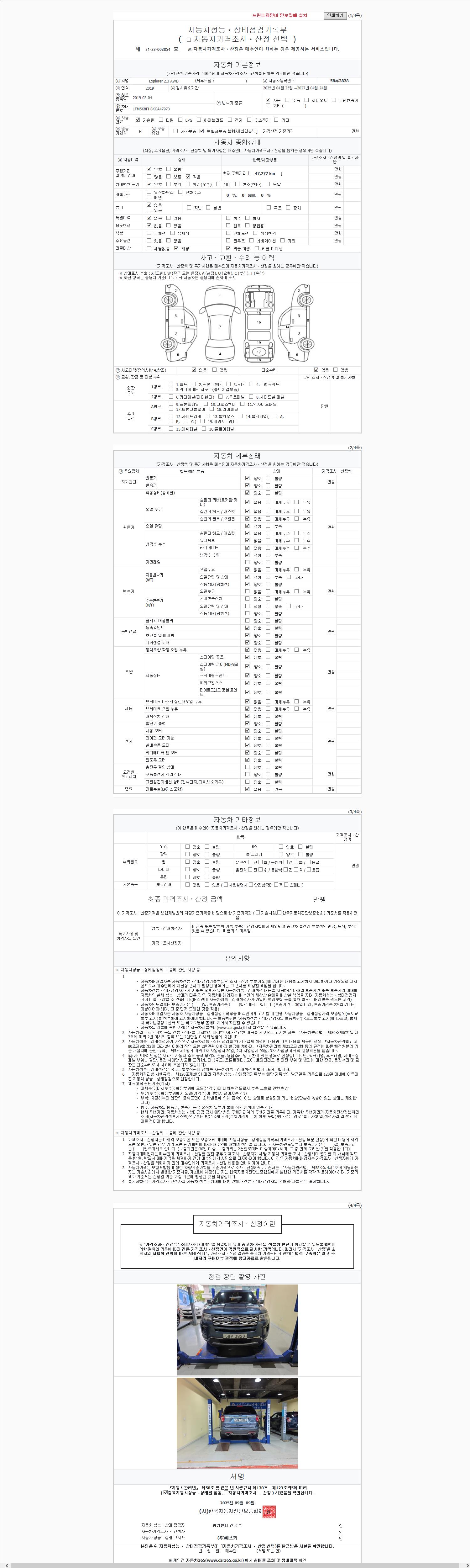 2. 차량 등록증이나 성능점검지 등을 상담자에게 요청및 확인하시고 사전에 미리 점검 하시기를 권유드립니다.