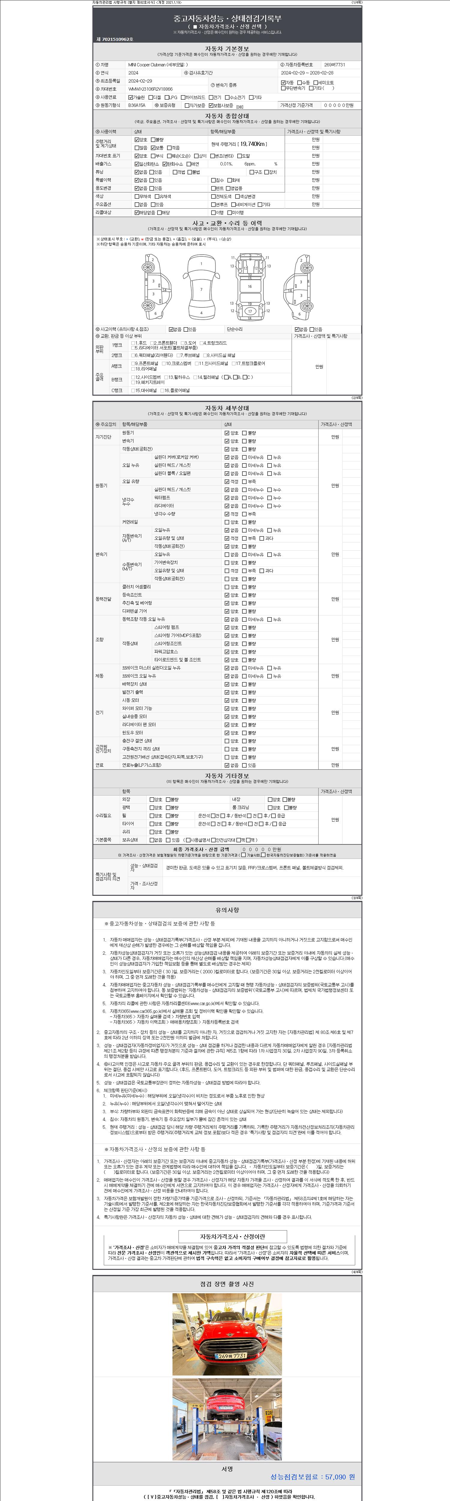 | 주행거리 | 19,740 km | 차량번호 | 269버7731 |
