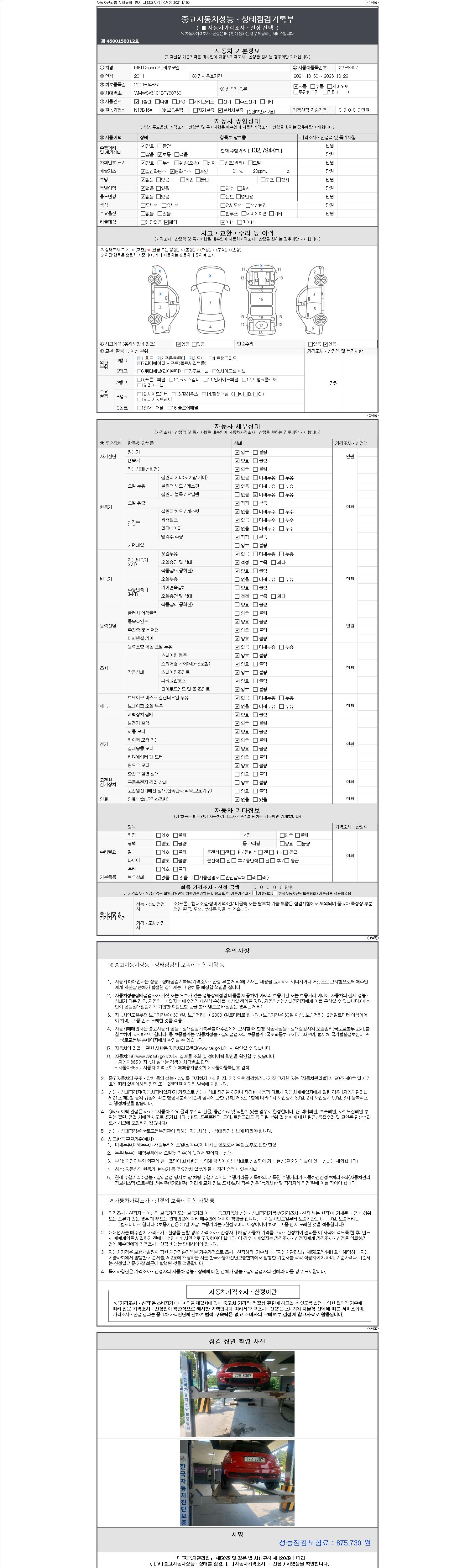 -중고자동차 매매업자를 통해 차량을 구입하실 경우 반드시 "중고자동차 성능, 상태점검 기록부"를 교뷰 받으셔야 하며, 매매업자는 반드시 의무 교부 하여야 압니다.