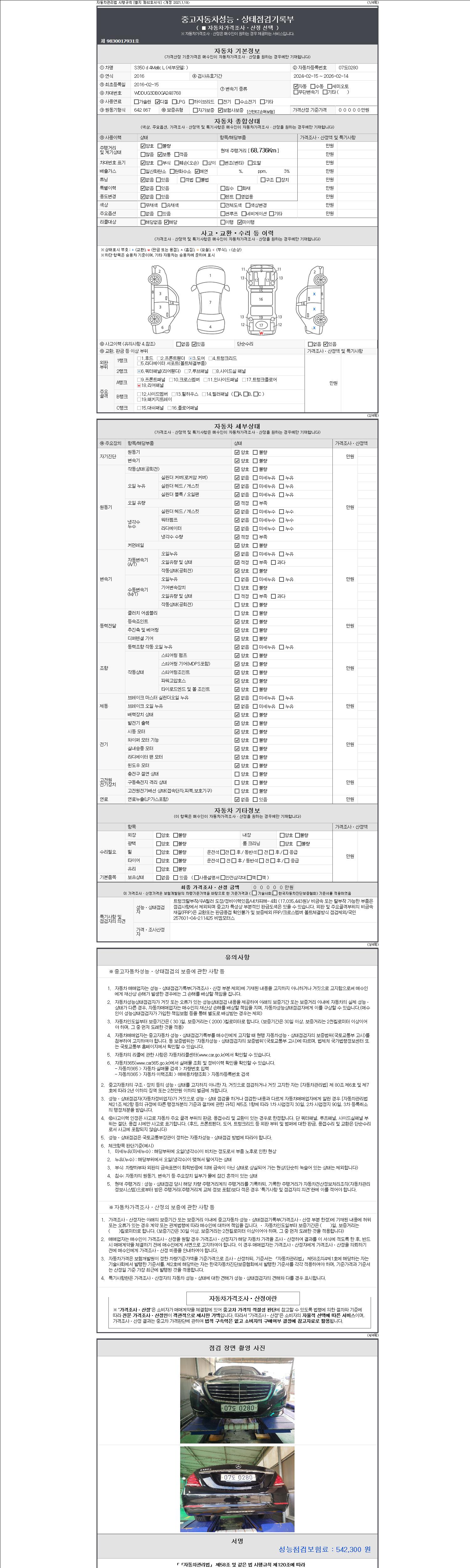 -중고자동차 매매업자를 통해 차량을 구입하실 경우 반드시 "중고자동차 성능, 상태점검 기록부"를 교뷰 받으셔야 하며, 매매업자는 반드시 의무 교부 하여야 압니다.