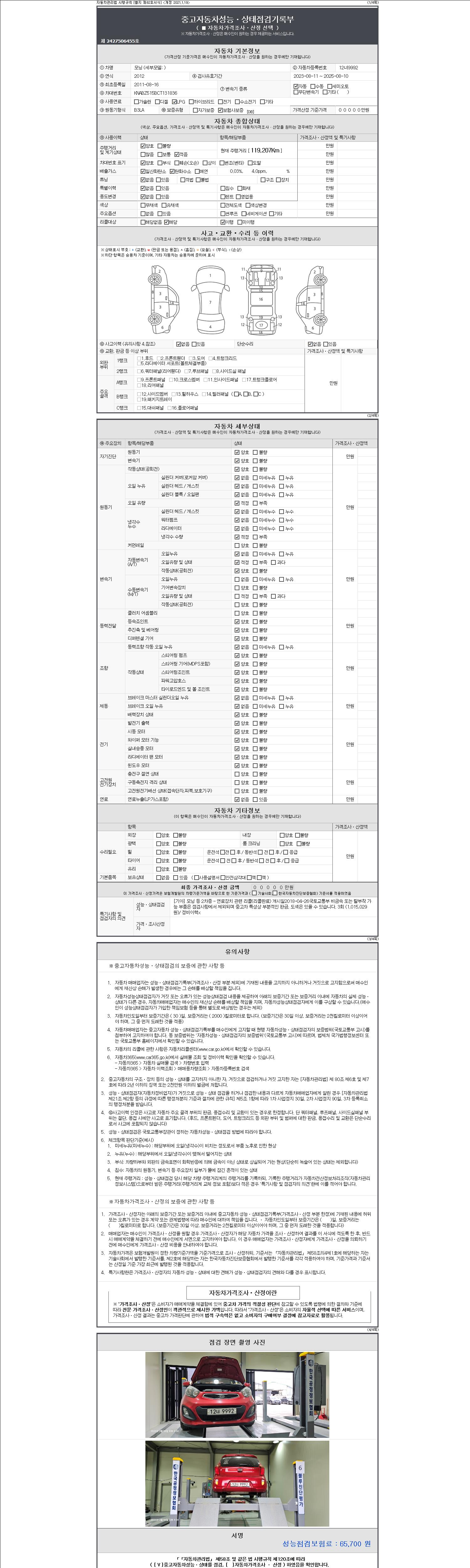 -중고자동차 매매업자를 통해 차량을 구입하실 경우 반드시 "중고자동차 성능, 상태점검 기록부"를 교뷰 받으셔야 하며, 매매업자는 반드시 의무 교부 하여야 압니다.