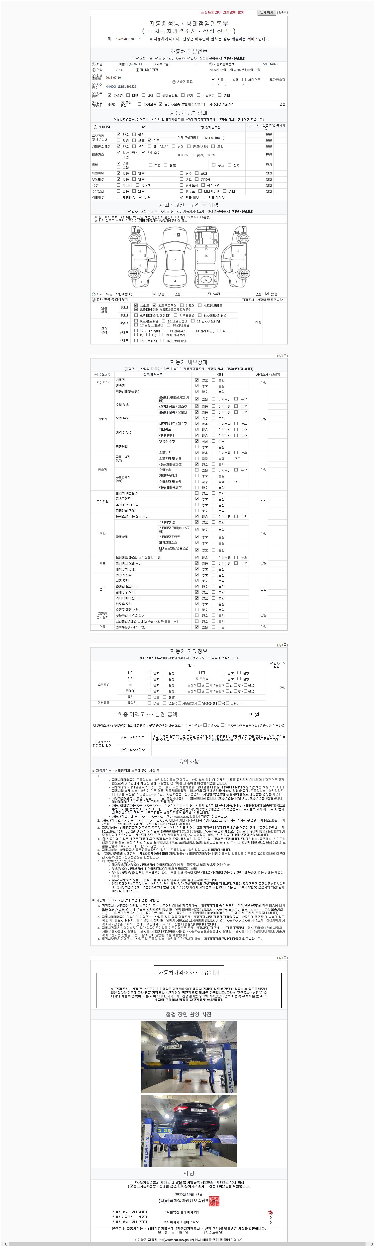 2. 차량 등록증이나 성능점검지 등을 상담자에게 요청및 확인하시고 사전에 미리 점검 하시기를 권유드립니다.