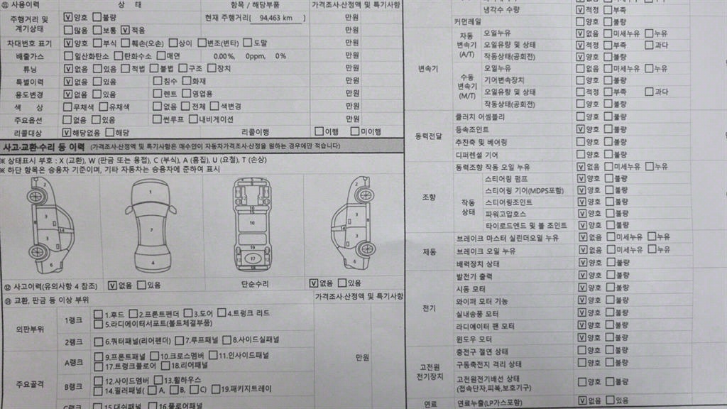 -중고자동차 매매업자를 통해 차량을 구입하실 경우 반드시 "중고자동차 성능, 상태점검 기록부"를 교뷰 받으셔야 하며, 매매업자는 반드시 의무 교부 하여야 압니다.
