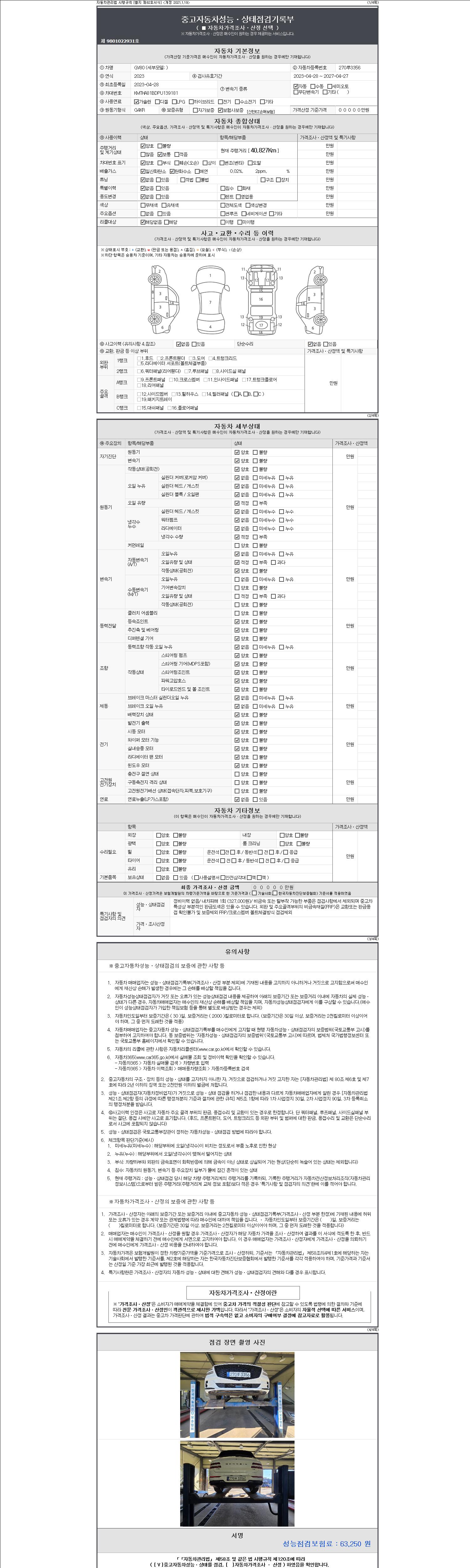사고유무 성능기록부 참조 제시번호 제 2147483647 호
