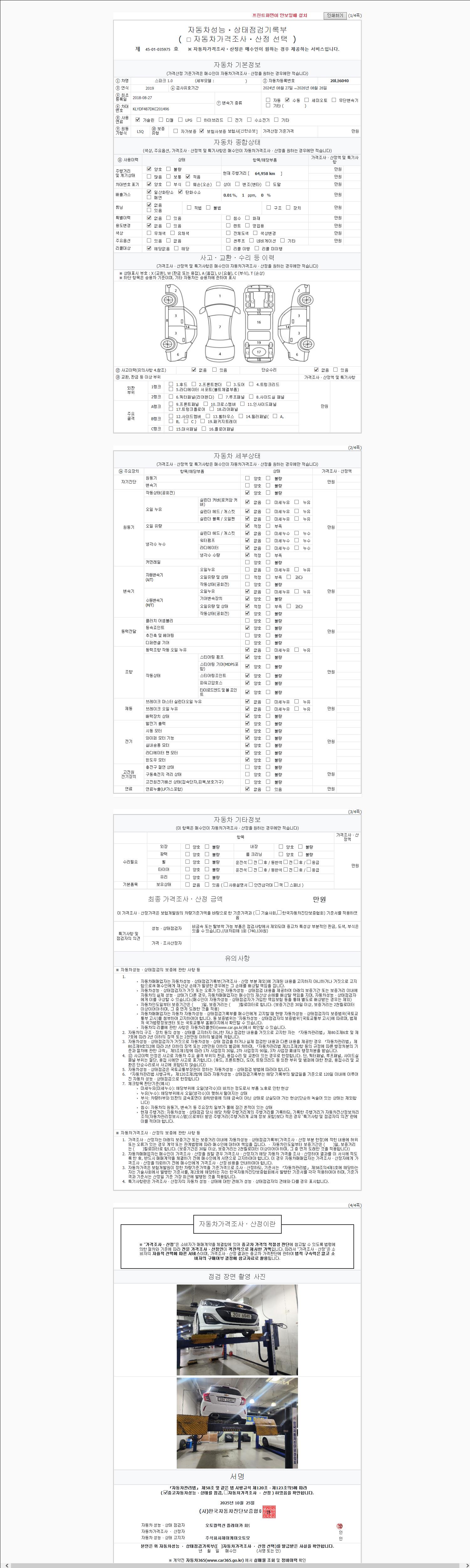 -중고자동차 매매업자를 통해 차량을 구입하실 경우 반드시 "중고자동차 성능, 상태점검 기록부"를 교뷰 받으셔야 하며, 매매업자는 반드시 의무 교부 하여야 압니다.