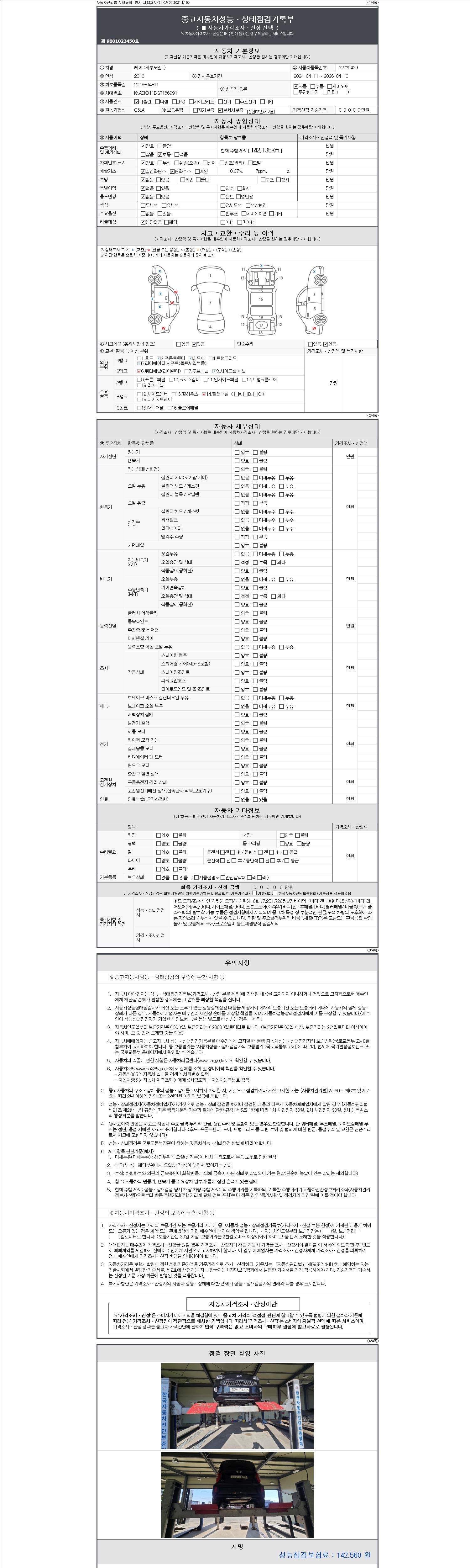 2. 차량 등록증이나 성능점검지 등을 상담자에게 요청및 확인하시고 사전에 미리 점검 하시기를 권유드립니다.