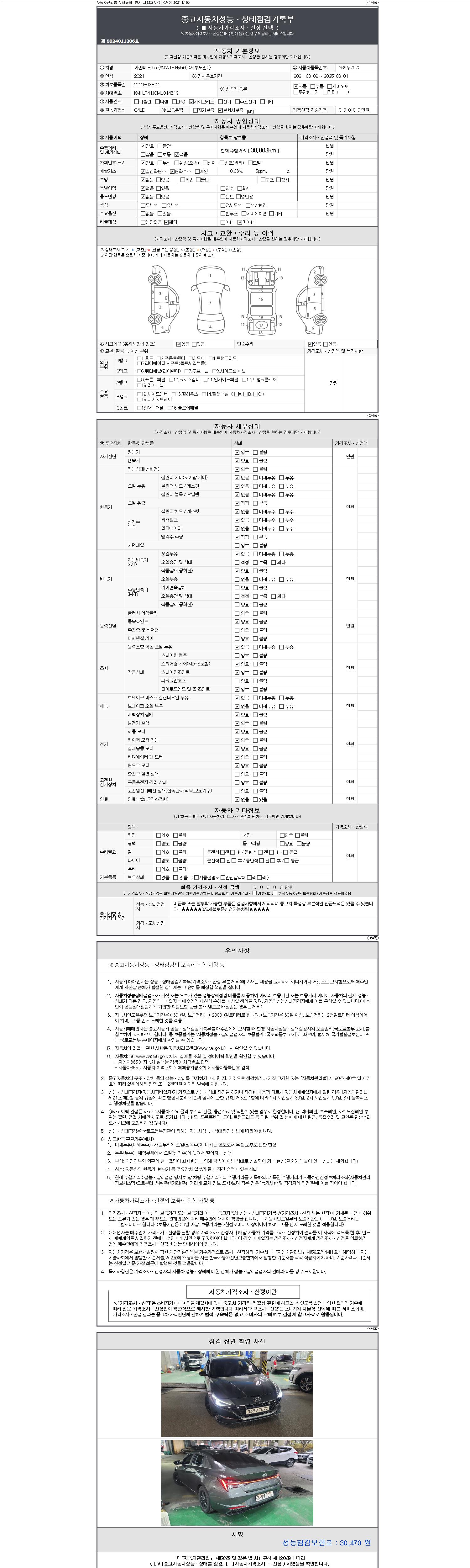 -중고자동차 매매업자를 통해 차량을 구입하실 경우 반드시 "중고자동차 성능, 상태점검 기록부"를 교뷰 받으셔야 하며, 매매업자는 반드시 의무 교부 하여야 압니다.