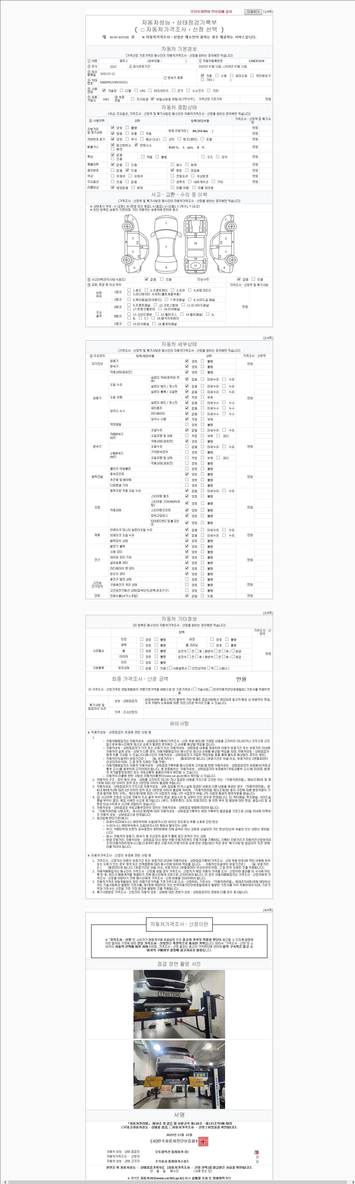 주행거리 89,354 km 차량번호 176다7234