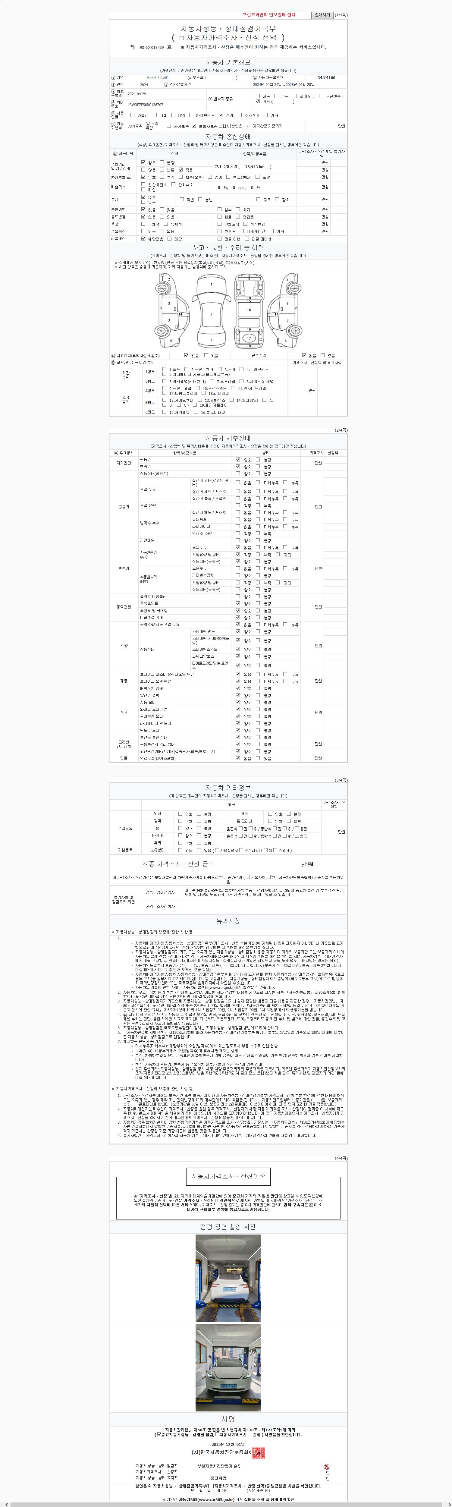 | 주행거리 | 25,443 km | 차량번호 | 34루4166 |