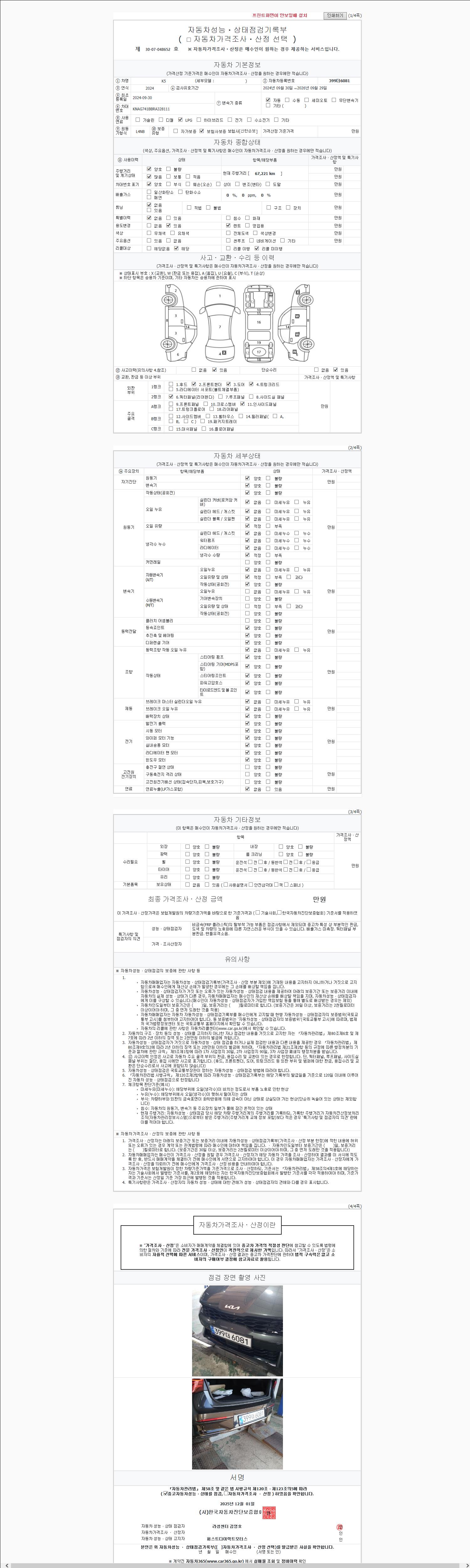 2. 차량 등록증이나 성능점검지 등을 상담자에게 요청및 확인하시고 사전에 미리 점검 하시기를 권유드립니다.